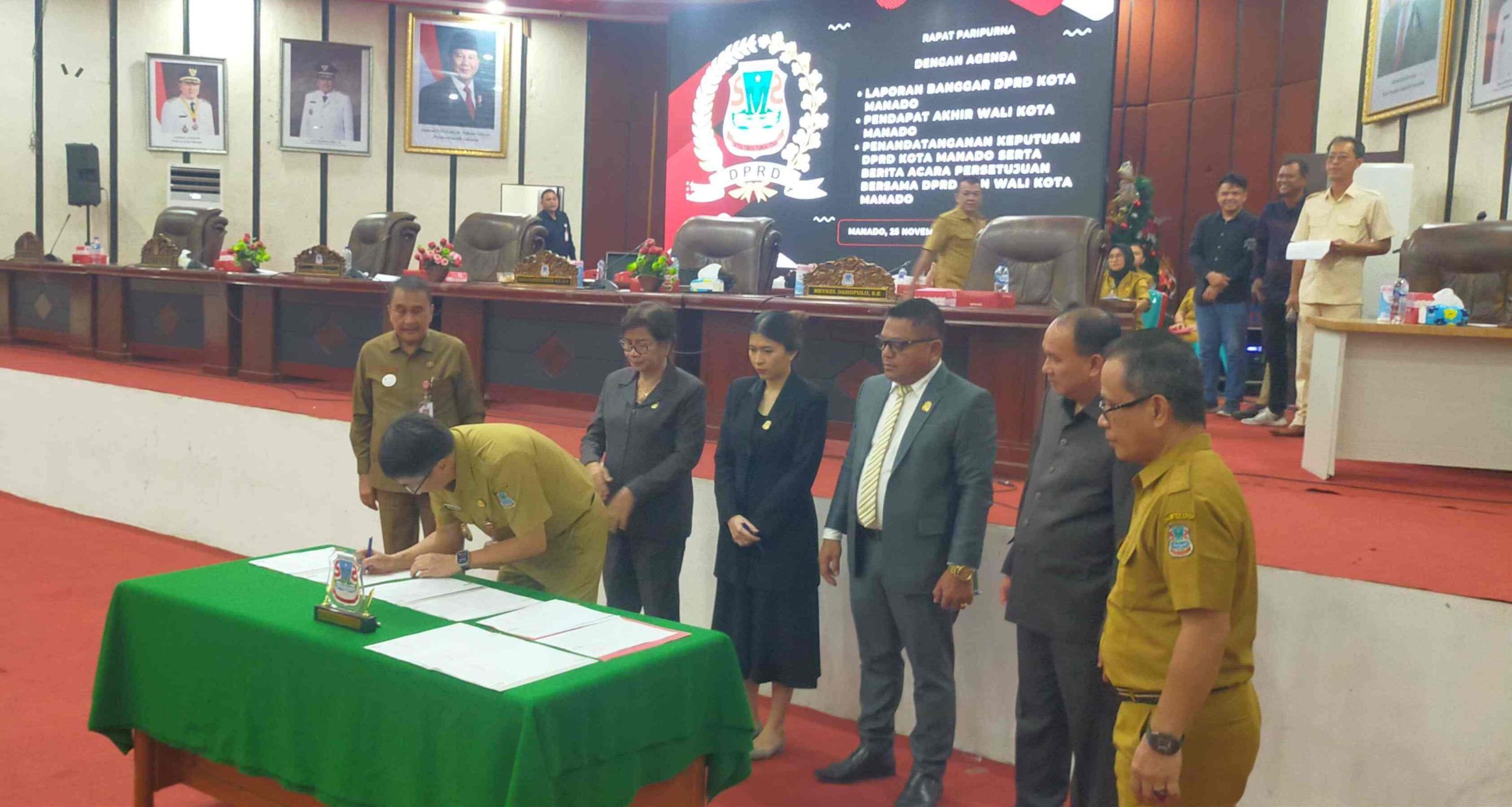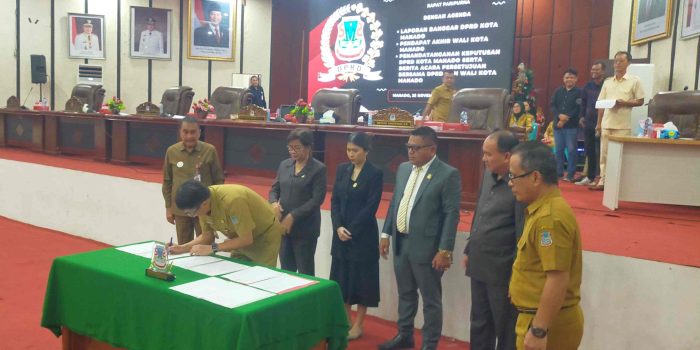 Usai itu, Walikota, unsur pimpinan DPRD Manado dan Sekretaris Daerah membubuhi penandatanganan berita acara tersebut