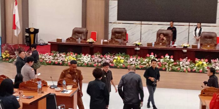 MANADO – Wali Kota Manado Andrei Angouw bersama Wakil Wali Kota dr. Richard Sualang menghadiri Rapat Paripurna DPRD Kota Manado yang digelar di Kantor DPRD Manado, Kelurahan Buha, Kecamatan Mapanget, Senin (27/10) pagi.